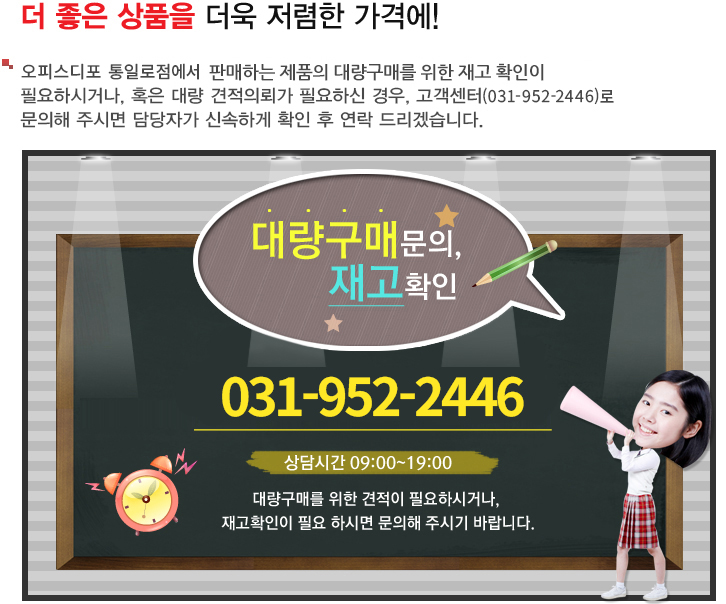 복사용지 플로터용지 팩스용지 전용지 전산용지 기타 감열지 커피류 차류 종이컵 음료수 명절특판(식품) 라면/즉석식품 껌/캔디류 기타 과자류 건강식품 간식류 가공식품 포토용지 컬러색지 컬러OA용지 자석 잉크젯용지 신문걸이/책꽂이/다용도함 사무소품 봉투/서식/장부 대형사무/게시용품 노트/수첩/다이어리 견출지 OA라벨지 화일케이스 포켓홀더/시스템화일/클립화일 특수화일/포트폴리오/도면화일 클립보드 클리어화일 쫄대화일 종이화일 앨범 심플시리즈 스프링화일 상장용품/방명록 바인더 명함철 다큐먼트화일 군용제품 결재판/리포트화일 PP화일 기타 학용미술용품 학용문구 학습교구 팬시/완구 악기/지구의 디자인문구 데코용품 데스크용품 노트/스케줄러/수첩 교육완구 몽블랑 형광펜 펠리칸 파카 크로스 중성펜 유성펜 유성마카 워터맨 연필 심플시리즈 쉐퍼/플래티넘 수성펜 샤프/샤프심 보드마카 라미 다색중성펜 다색볼펜 네임펜 까렌다쉬 기타 M&G 펜 기타 플라스틱링제본기 프리젠터/레이저포인터 출퇴근 기록기 천공기 제본소모품 재단기 와이어제본기 열제본기 세단기 라벨프린터 라미네이팅 필름(코팅필름)/OHP필름 라미네이터(코팅기) 계수기 휴지통 파티용품/포장용품 청소용품 차량용품 주방용품 우산/계절용품 옷걸이/행거 여행용품 액자 안전용품 시계 슬리퍼/양말 스포츠용품 수납정리용품 생활잡화 부착걸이용품 반려동물용품 랜턴 기타 사무용품 환경/청소/생활용품 화학 포장/저장 철물/DIY 보수 전동공구 전기전자제품 전기전자부품 장갑 유공압/공조/유체 와이퍼/흡착재 실험기자재 수공구 소방/안전 생산/운반 산업잡화 사무자동화 동력기기 기계요소 공기구 건전지 건설/설비보수 유아용품 기타 화장지 헤어케어 향수 핸드/풋케어 청소용품 의약외품 위생용품 욕실용품 스타킹/양말 스킨케어 샴푸 뷰티기기/소품 밴드 방향방충방습 바디케어 물티슈 메이크업 마스크 립케어 껌/캔디류 기프트세트 구강위생용품 펠트 캔버스/스케치북 지점토 제도용품 이젤 우드보드/폼보드 서예용품 색연필/마카/파스텔 붓 미술용품 물감/포스터컬러 기타 DIY/취미용품/라인테이프 전산 악세사리 스마트빔 화상회의 플래쉬 메모리카드 프린터 프로젝터/스크린 키보드 케이블/멀티탭 조립식 데스크탑 이어폰/헤드폰/헤드셋 웨어러블 디바이스 외장하드 애플 스피커 스마트폰 악세사리 소프트웨어 보안기 모니터클립/북스탠드 모니터 멀티 카드리더기 마우스패드 마우스 키보드 콤보 마우스 디지털 카메라/액션캠 드론/RC 데스크탑 대형사무/게시용품 노트북용품 노트북가방 노트북 기타 공유기/랜카드 USB허브 USB메모리 PC 정리용품 iOT CD/DVD/케이스/보관함 판촉물 인주/스탬프/잉크 스탬프/잉크/인장함 도장/고무인 꽃배달 캐논토너 캐논잉크 재제조토너 엡손토너 엡손잉크 삼성토너 삼성잉크 리본/카트리지 기타잉크/토너 교세라/청호토너 HP토너 HP잉크 특판 상패간판 도장고무인 판촉 회의용 테이블/강의용 책상 파티션 캐비닛/락커장 사무용 의자 디자인 가구 데스크/서랍 다용도 의자 금고 공간박스 에어컨 주방가전 전화기 전열기 선풍기 생활가전 무전기 공기청정기 가습기/제습기 KBO 카카오 팀 코리아 굿즈 야구용품 의류 모자 사무용품 잡화 캐릭터상품 매장추천상품